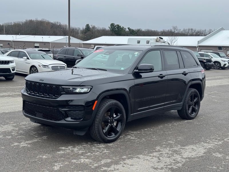 **CHRYSLER CERTIFIED**, **CLEAN CARFAX ONE OWNER**, **ALTITUDE APPEARANCE PACKAGE**, **SUEDE SEATS**, **FACTORY REMOTE START**, **HEATED STEERING WHEEL**, **HEATED FRONT SEATS**, **BLACK HEADLINER**, **POWER LIFTGATE**, **8.4 TOUCHSCREEN RADIO**, **APPLE CARPLAY / ANDROID AUTO**, **ADAPTIVE CRUISE CONTROL**, **REAR PARKING SONAR**, **LANE KEEP ASSIST**, **BLIND SPOT DETECTION**, **PRE COLLISION**, **10.25" DIGITAL DISPLAY**, 4WD, 115-Volt Auxiliary Power Outlet, 4-Wheel Disc Brakes, ABS brakes, Altitude Appearance Package, Anti-whiplash front head restraints, Black Headliner, Brake assist, Capri Leatherette Seats w/Suede, Delete Laredo Badge, Dual front impact airbags, Dual front side impact airbags, Electronic Stability Control, Front anti-roll bar, Gloss Black Exterior Accents, Gloss Black Roof Rails, Knee airbag, Low tire pressure warning, Occupant sensing airbag, Overhead airbag, Power Liftgate, Quick Order Package 23B Altitude, Rain-Sensing Windshield Wipers, Rear anti-roll bar, Remote Start System, Secondary Active Grille Shutters, Selectable Tire Fill Alert, Wheels: 20" x 8.0" Gloss Black Aluminum, Wireless Charging Pad. CARFAX One-Owner. Clean CARFAX. Diamond Black Crystal Pearlcoat 2023 Jeep Grand Cherokee Altitude 4WD 8-Speed Automatic 3.6L V6 24V VVT