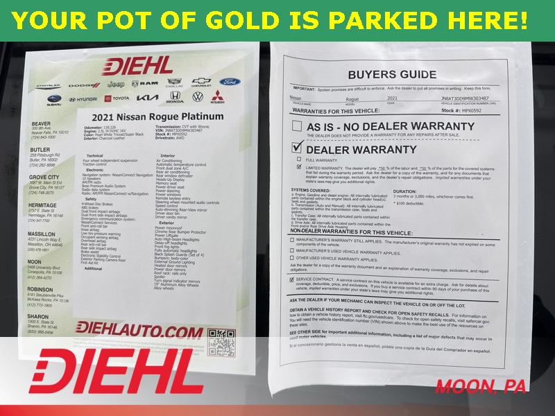 If you are looking for a well equipped, technology packed SUV that still feels refined and capable, this 2021 Nissan Rogue Platinum AWD checks all the right boxes. Find it today at Diehl of Moon Twp before someone else claims it.