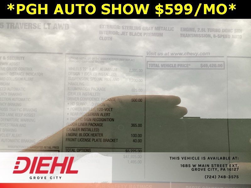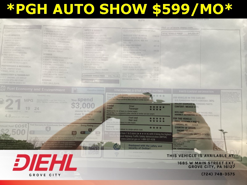 Diehl Automotive utilizes a system that generates market value pricing automatically for new and pre-owned vehicles and may cause errors, inaccuracies, or omissions. Some aftermarket additions or accessories may not be displayed properly. For accuracy, please contact the dealer for real-time, accurate pricing. A documentation fee of $477 applies and is not included in the pricing. Tax, Title, and Tags are also not included and must be paid by the purchaser. Some prices may include manufacturer-to-dealer offers that are not compatible with manufacturer special finance programs and/or lease offers. While great effort is made to ensure the accuracy of the information on this site, errors do occur so please verify information with a customer service rep. This is easily done by calling us at 724.608.3483 or by visiting us at the dealership.