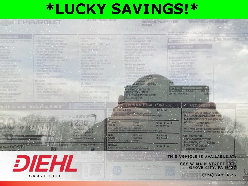 28/32 City/Highway MPG Price includes: $500 - Chevrolet GM Financial APR & NCC Consumer Cash Program: $500 discount and 5.69% APR for 36 months. $30.28 per $1000 financed. Available to well qualified buyers who finance through GM Financial. XGQ, NCC. Exp. 03/31/2026 This rebate is only available if you also take the 'Chevrolet GM Financial APR & NCC Consumer Cash Program: $500 discount and 5.69% APR for 36 months' rebate. $500 - Chevrolet GMF Bonus Cash Program. Exp. 03/31/2026