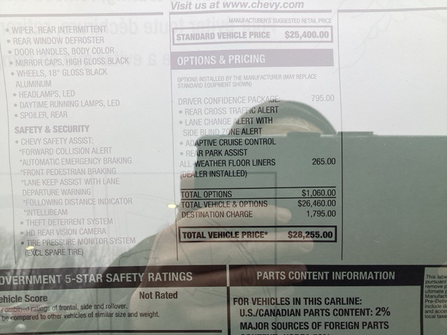 28/32 City/Highway MPG Price includes: $500 - Chevrolet GM Financial APR & NCC Consumer Cash Program: $500 discount and 5.69% APR for 36 months. $30.28 per $1000 financed. Available to well qualified buyers who finance through GM Financial. XGQ, NCC. Exp. 03/31/2026 This rebate is only available if you also take the 'Chevrolet GM Financial APR & NCC Consumer Cash Program: $500 discount and 5.69% APR for 36 months' rebate. $500 - Chevrolet GMF Bonus Cash Program. Exp. 03/31/2026