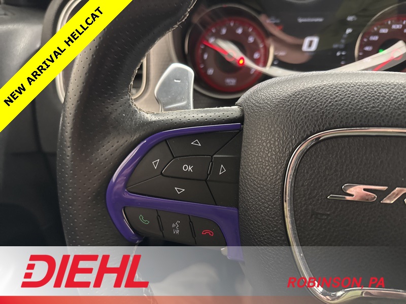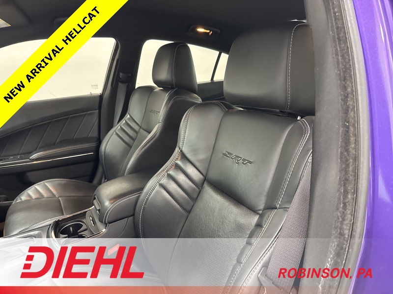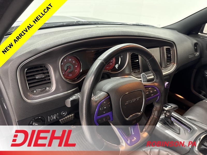 Finished in Plum Crazy Pearl Coat with a Black Laguna leather interior, this Hellcat looks every bit as aggressive as it feels. The stance is wide and planted, enhanced by 20-inch forged wheels, performance tires, functional hood scoops, and signature SRT design cues that leave no doubt about what this Charger is capable of. Brembo high-performance brakes, adaptive suspension, and multiple selectable drive modes give you precise control over how the car responds, whether you’re in Sport, Track, or Street settings.