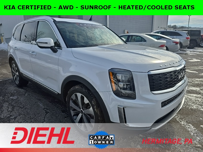 Certified. Clean CARFAX. CARFAX One-Owner. 2022 Kia Telluride EX EX 20/26 City/Highway MPG Glacial White Pearl Priced below KBB Fair Purchase Price! Kia Certified Pre-Owned Details:
