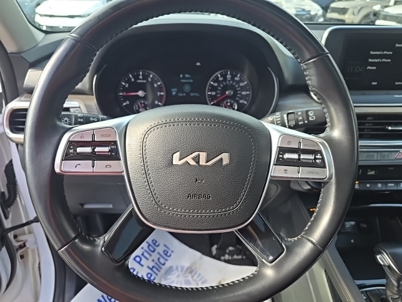 **ONE OWNER**, **CLEAN CARFAX**, **KIA CERTIFIED**, **ALL WHEEL DRIVE**, **HEATED SEATS**, **COOLED SEATS**, **ADAPTIVE CRUISE CONTROL**, **LANE KEEP ASSIST**, **BLIND SPOT DETECTION**, **FRONT CRASH DETECTION**, **BLUETOOTH**, **NAVIGATION**, **BACKUP CAMERA**, **ALLOY WHEELS**, **REMOTE START**, **SUNROOF**, **ANDROID AUTO**, **APPLE CARPLAY**, **LED HEADLIGHTS**, Telluride EX, Glacial White Pearl, Black Leather, 20" x 7.5" Machined Alloy Wheels, 2nd Row Captain Chairs, 4-Wheel Disc Brakes, ABS brakes, Apple CarPlay & Android Auto, Automatic temperature control, Delay-off headlights, EX Premium Package, Front dual zone A/C, Fully automatic headlights, Heated & Ventilated Front Bucket Seats, Leather Seat Trim, LED Headlamps, Low tire pressure warning, Navigation System, Power driver seat, Power Liftgate, Power moonroof, Power passenger seat, Power steering, Reclining 3rd row seat, Satin Chrome Roof Rails, Smart Key w/ Push Button and Remote Start, Steering wheel mounted audio controls, Telescoping steering wheel, Tilt steering wheel.