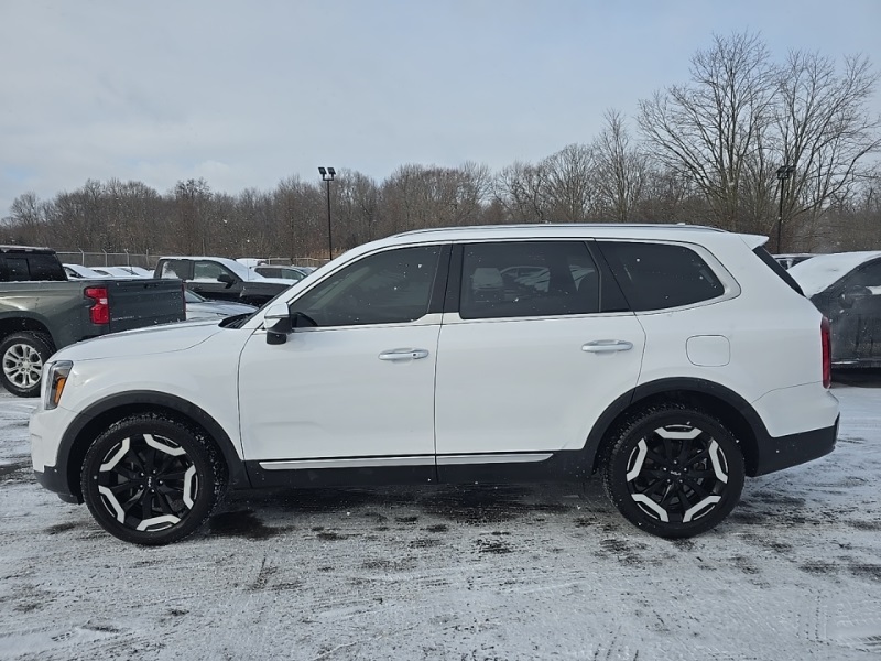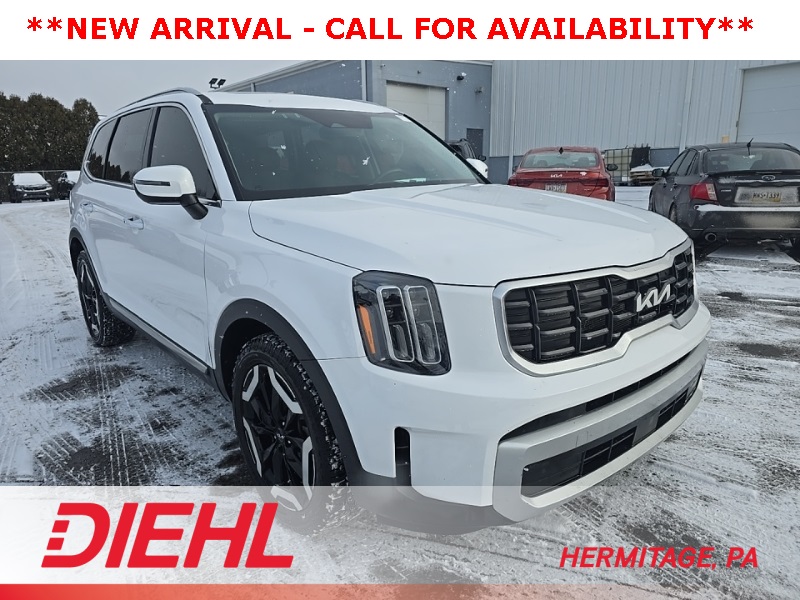 **KIA CERTIFIED**, **ALL WHEEL DRIVE**, **HEATED SEATS**, **ADAPTIVE CRUISE CONTROL**, **LANE KEEP ASSIST**, **BLIND SPOT DETECTION**, **BLUETOOTH**, **NAVIGATION**, **PREMIUM WHEELS**, **3RD ROW SEATING**, **REMOTE START**, **ANDROID AUTO**, **APPLE CARPLAY**, Telluride S, AWD, Glacial White Pearl, Black Artificial Leather, 4-Wheel Disc Brakes, ABS brakes, Apple CarPlay & Android Auto, Auto High-beam Headlights, Automatic temperature control, Delay-off headlights, Exterior Parking Camera Rear, Front dual zone A/C, Fully automatic headlights, Heated front seats, Low tire pressure warning, Navigation System, Power driver seat, Power Sunroof w/Sunshade, Rear audio controls, Remote keyless entry, S Sunroof Package, Smart Key w/ Push Button and Remote Start, SynTex Synthetic Leather Seat Trim, Telescoping steering wheel, Tilt steering wheel.